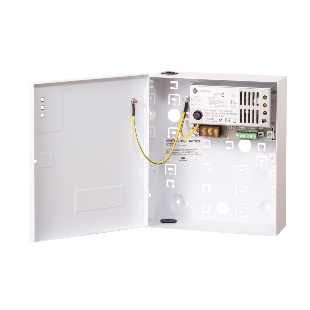 sabotagecontact en keuzeschakelaar voor 24V of 27,6V.