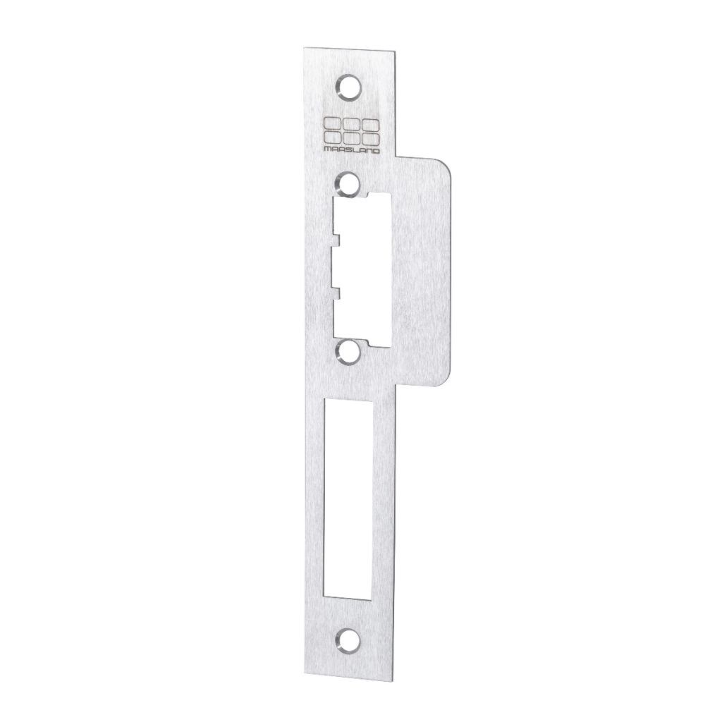 Elektrische deuropener met geïntegreerde schootgeleider en universele spoel die in het kozijn, tegenover de dagschoot van een mechanisch slot wordt ingebouwd, om deze te vergrendelen of te ontgrendelen. De schootgeleider duwt de dagschoot uit de schootvanger van de elektrische deuropener zodat, zonder lelijke uitsparingen in het kozijn, de deur kan worden ontgrendeld. De lange sluitplaat is speciaal gemaakt ter vervanging van de Nemef P646 rechthoekige sluitplaat.